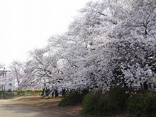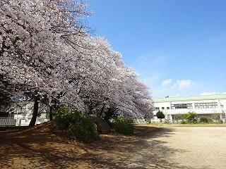 (↑ 校庭の桜も、だいぶ咲いてきました。)