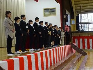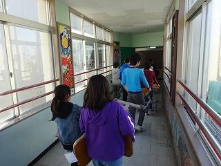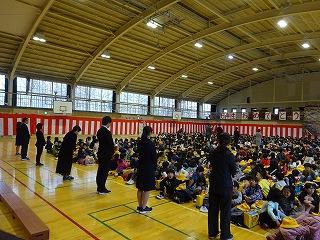 ↑ 机・イスを運んで教室の移動が進みました。また、校舎内の清掃をおこないました。新6年生一人一人がしっかりと取り組んでくれたので、清掃や準備も順調に進みました。最後に、入学式で一年生を歓迎する合奏や言葉の練習をして終わりとなりました。