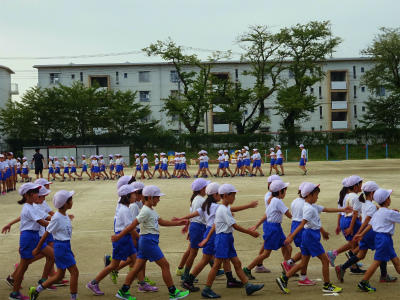 本日は曇りの朝となりました。業前は全校で運動会の練習をしています。