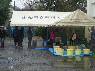 午後の「桜っ子まつり」(PTAバザー)にむけて準備が進んでいます。