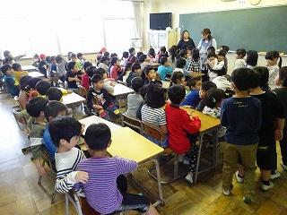 今日は、二年生が主催して「一年生といっしょに遊ぼうの会」が開かれました。二年生が雄一年生を招いて、グループごとに工夫して校庭で一緒に遊びました。鬼ごっこ、ドッジボール、なわとび、だるまさんがころんだ、等々の遊びで、みな楽しそうに仲よく遊びました。二年生がお兄さん・お姉さんとして大活躍しました。