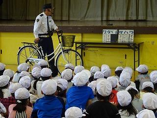 春日部警察署の方、交通指導員さん、春日部市役所の方に来校いただき、子供たちへ交通安全についてご指導いただきました。学年に応じて、自転車の乗り方や点検、道路の渡り方、交通マナーなどを教えていただきました。どの子供たちも真剣に参加して、しっかり話しを聞いたり実演を見守ったりできました。