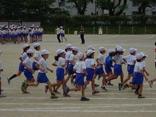 昨日よりも気温の低い朝となりました。本日の朝は、さわやかタイムです。天気はくもりですが、子供たちは校庭で元気に運動しています。今日は特に「走る運動」に取り組みました。
