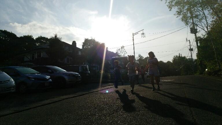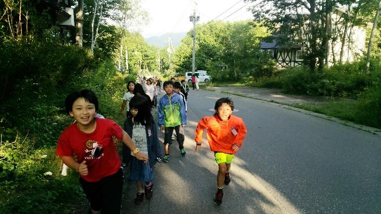 子供達も起床し、元気に朝の桜川散歩。