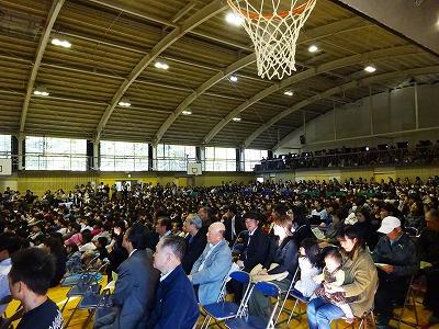 体育館はご覧のように満員御礼状態でした。桜川小の広い体育館が狭く感じた一日でした。