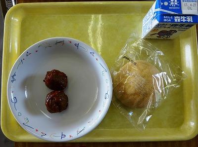 ミートボール、メロンパン、牛乳です。