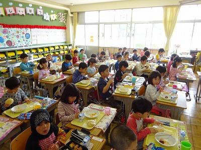 大人が見ると「すくないかな?」と思うメニューですが、食べ始めるとみんなうれしそうに黙々と食べています。おしゃべりがきこえません。