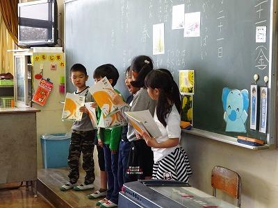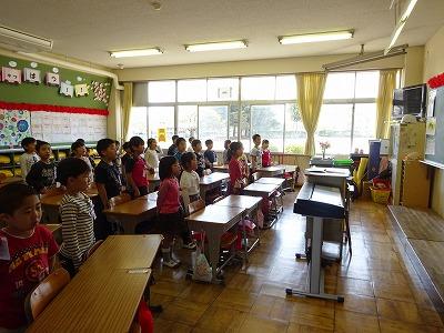 1年生が朝の会で校歌をうたっていました。メロディーをもう覚えてしまっていて、とても元気な声で歌っていました。