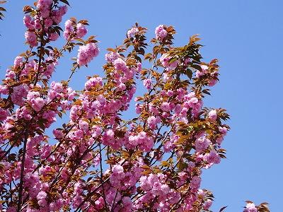 正門のそばにある八重桜が見頃になりました。