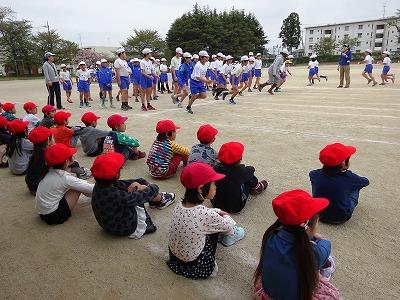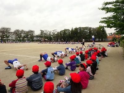 すぐ近くで高学年の人たちが準備運動をしているのを、体育すわりでよく見ています。