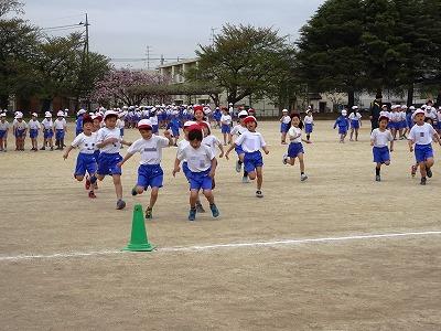走る運動、跳ぶ運動にわかれて行う様子も、よくみていました。