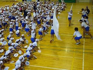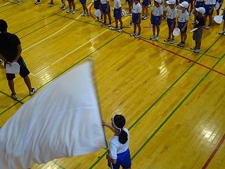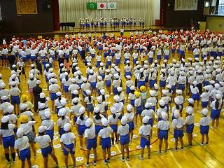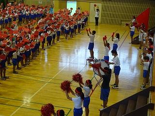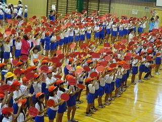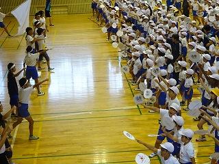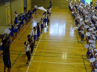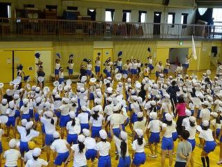 本日の朝は雨のため、運動会前最後の全体練習は体育館でおこないました。