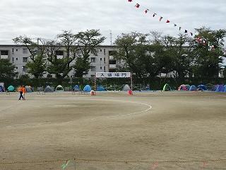 7:00おやじの会の方々にも協力いただき準備を進めています。7:00多くの人の協力で、前日雨でできなかった準備がほぼ完了しました。
