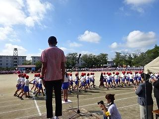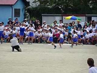 9:25 5年生の徒競走が始まっています。ほぼ予定通りです。9:40 3年生の徒競走が始まっています。9:47 4年生の徒競争が始まります。9:55 2年生の徒競走が始まります。10:10 1年生の徒競走が始まっています。予定より少々早めでプログラムが進んでいます。10:20 6年生の徒競走が始まっています。10:25 来年度1年生として入学する新入児の皆さんの徒競走が始まります。