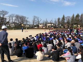 本日は避難訓練がありました。3学期の避難訓練は、子供たちが自主的に動けることを目指して予告なしでおこないました。1校時の授業の途中でしたが、「訓練、訓練」の放送に続いて緊急地震速報のアナウンスが流れると、校庭や教室、それぞれの活動場所で子供たちはすぐに体をまるめ安全な姿勢をとりました。その後、「揺れがおさまりました。校庭へ避難してください。」のアナウンスで、整然と避難をすることができました