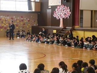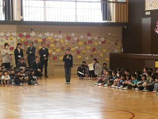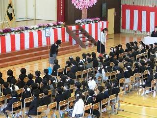 一年生は「入学おめでとうございます」と呼びかけると、元気に「ありがとうございます」と答えます。