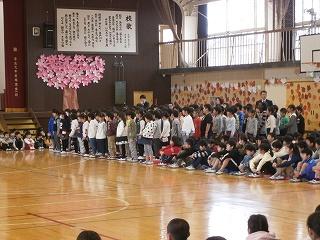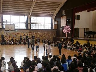 本日の朝は「一年生を迎える会」でした。入学してきた一年生を、2~6年生があたたかく迎えました。