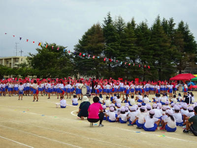 12:40バトンダンス・金管バンドクラブによるパレードが始まります。13:00児童全員が紅白に分かれての応援合戦です。