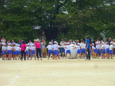 14:28いよいよ最終種目、全員が紅白に分かれての大玉送りです。