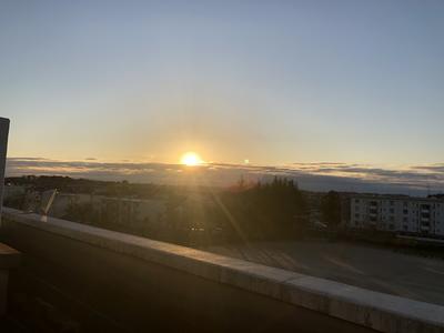 ( ↑ 桜川小学校からの初日の出。厚い雲の波を抜けて、輝く初日が顔を出した瞬間です。)