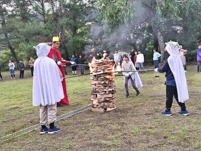 日もすっかり落ち、いよいよキャンプファイヤーです。