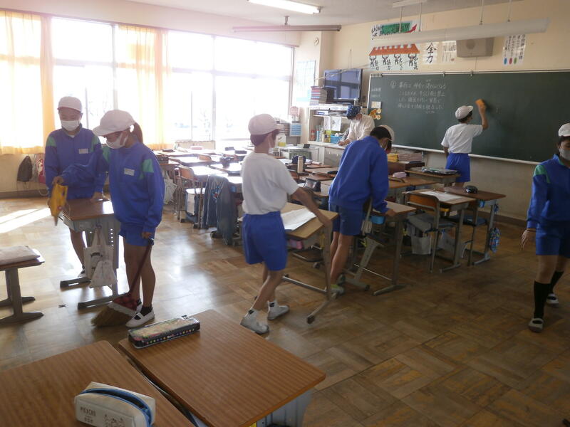 高学年のお掃除の様子を見て、1年生も掃除の仕方を覚えることができました。
