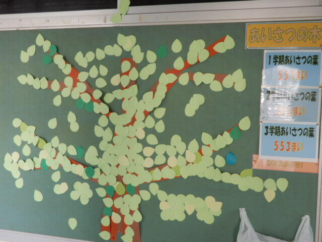 あいさつの葉をたくさん貼って、あいさつの木を彩ってくれることを期待しています。
