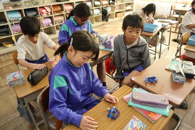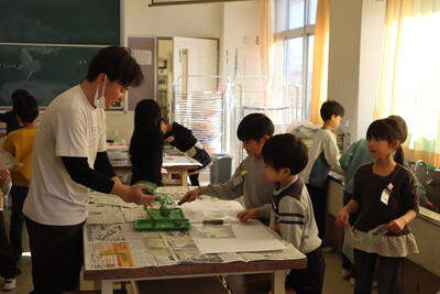 3年生は豆電球の実験 2年生は版画などを行っていました