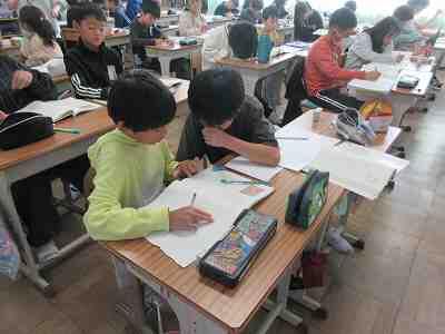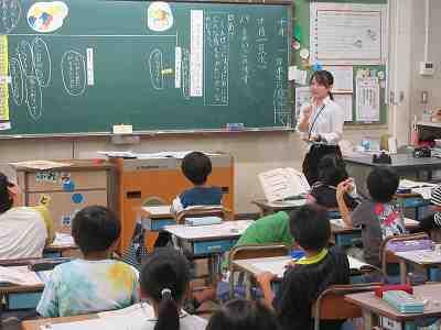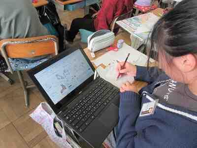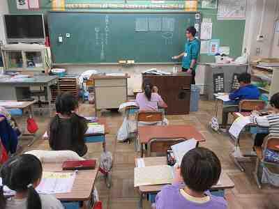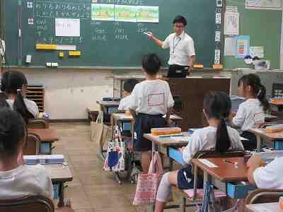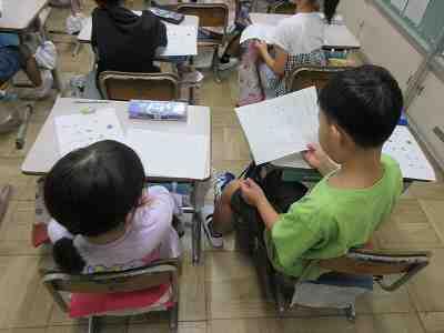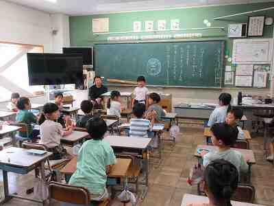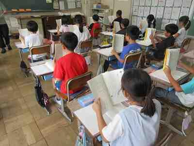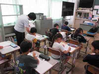 2年生は、算数でかけ算の学習をしていました。5年生では、国語で古文の学習をしていました。