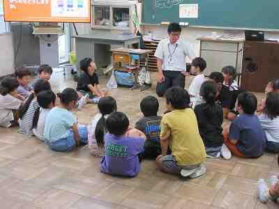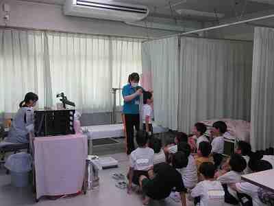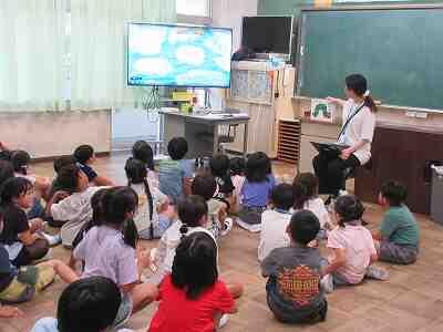 今月の生活目標は「時計を見て行動しよう」です。生活目標のお話に1年生が協力してくれました。