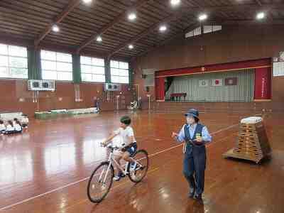 自転車の安全な乗り方について教えていただき、決められたコースを自転車で走りました。4年生は緊張したようですが、しっかりと安全運転をすることができました。これからも、今回学んだことを忘れずに自転車の安全運転をしていきましょう。
