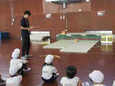 今日は、春日部市教育委員会のスポーツ推進課の皆様に来校いただき、「軽スポピック教室」を行いました。