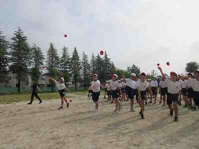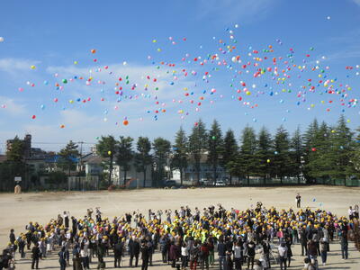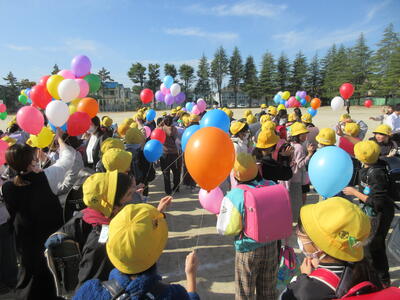 第三部は、校庭に出て「バルーン・リリース」(風船飛ばし)です。