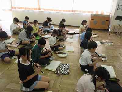 音楽の時間に、箏教室を行いました。箏の先生に来校いただき、4~6年生が琴の演奏にチャレンジしました。初めて箏に触れる児童が多く、緊張しながらも熱心に学習に取り組んでいました。