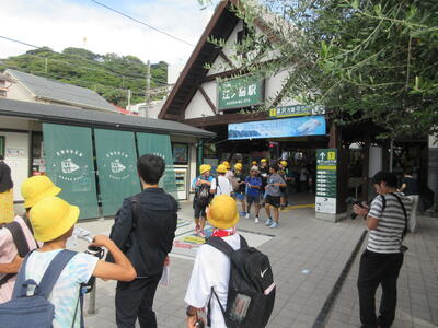 14:00 江ノ島駅です。 班行動の最終目的地 、新江ノ島水族館へ向かって行きます。