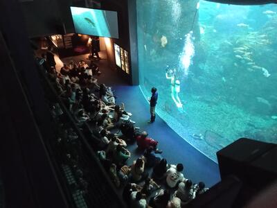 14:40 全ての班が受付を完了して、全員が新江ノ島水族館に到着しました。水族館の見学を行っています。
