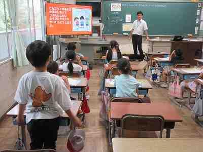 9月の生活目標は「大きな声で返事やあいさつをしよう」です。気持ちのよいあいさつを交わし、2学期を元気にスタートしていきましょう。