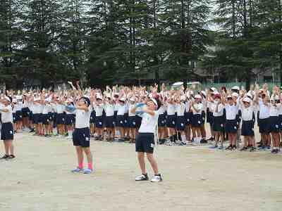 2学期初めてのフレッシュタイムがありました。朝はまだ運動のしやすい気温ですが、日中は猛暑になってしまう日が続いています。これから、少しずつ気温が下がって運動しやすい季節になっていくと思います。子どもたちには、校庭でたくさん運動し、体力を高めてほしいと思います。
