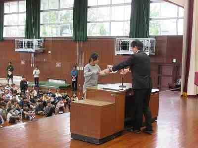 夏休み読書マラソン、市内読書感想文コンクール、身体障害者福祉のための児童生徒美術展、市内科学展の表彰を行いました。