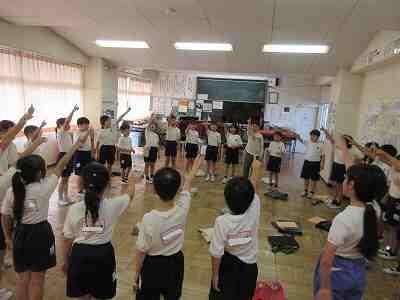今日も熱中症警戒アラートが発表されています。そのため、校庭で運動することはできません。しかし、今年度から体育館には空調が設置されました。そのおかげで、猛暑の中でも、体育館で体育の授業をしっかり行うことができています。