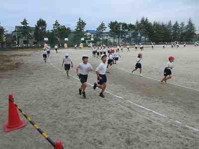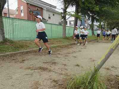 フレッシュタイムでは、持久走記録会に向けて、持久走の練習を行いました。子どもたちは、学年に応じたコースを朝から軽快に走っていました。
