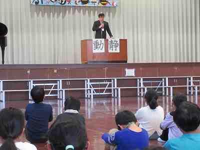 今日は全校朝会がありました。校長先生からは「動」と「静」のお話がありました。