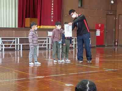 また、正善小学校へ新しく来られた先生の紹介がありました。その後、美術展での受賞、ひろばの風合唱団の合唱コンクールの表彰がありました。