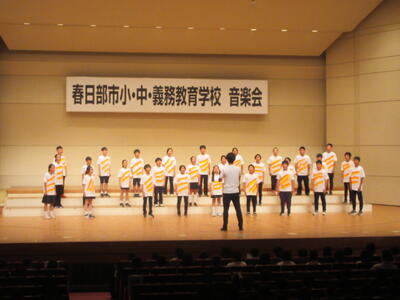 本日、春日部市小中義務教育学校音楽会が市民文化会館(にじいろホール)でおこなわれ、本校からは学校を代表して6年2組が出場しました。