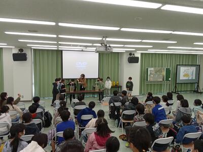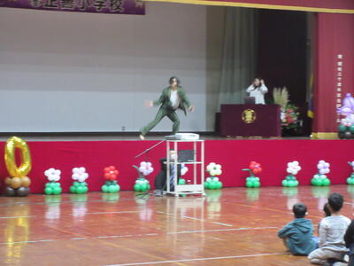 ( ↑ オープニングの記念映像。歴代の校長や過去の児童の活動の様子が、再現されました。)