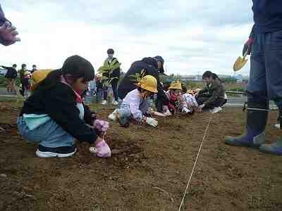 植樹の体験をしました。植えた樹木が、これから大きくなっていくのが楽しみです。その後、公園内の植物や生き物をさがしました。どんな生き物が見つかったのでしょうか?