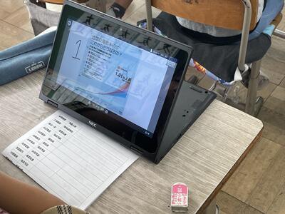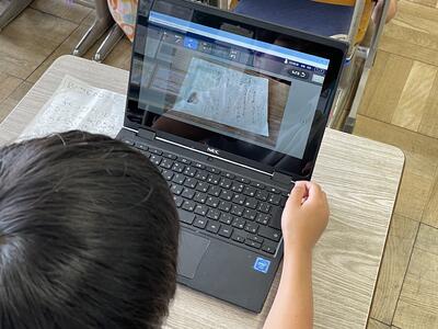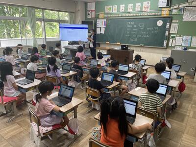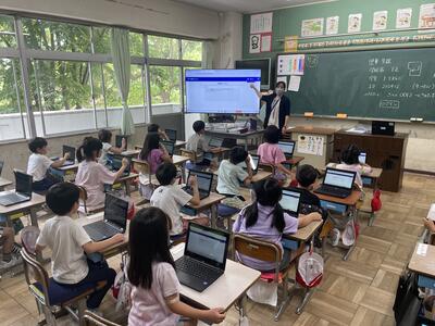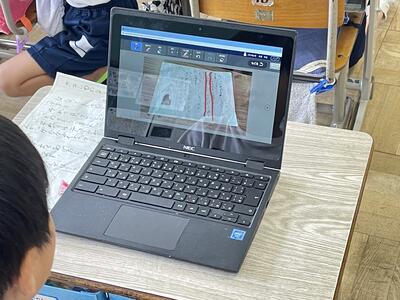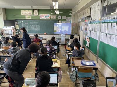 教室をまわってみると、今日も、いろいろな学級で学習用端末や大型提示機を活用して授業が行われていました。