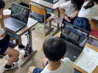 子供たちは、1人1台のタブレットを操作しながら、事前に講師の方から送られた画像などの情報をもとに、自分で考えたり、大人と話し合ったりしました。