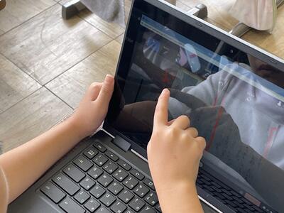 子供たちは、1人1台のタブレットを持参して、画面の必要な情報を自分で判断して撮影したり保存したりしていました。