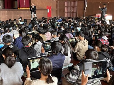2月20日、講師の方をお招きして、3年生を対象として『明日の自分を大切にする』のテーマでSNS講座「デジタルシティズンシップ教室」が開かれました。